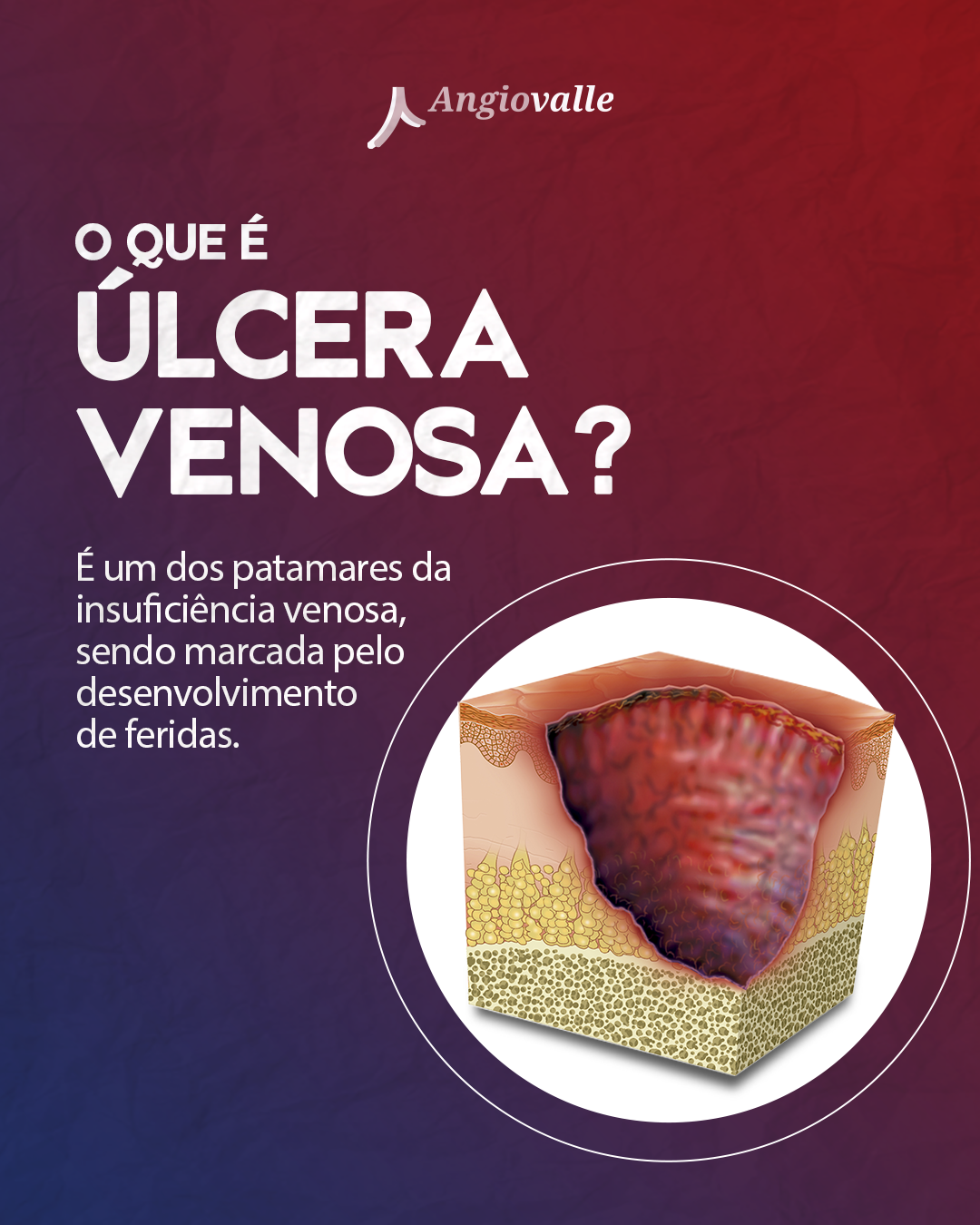 A úlcera varicosa, outro nome para a esse tipo de úlcera, é um dos patamares da insuficiência venosa, sendo caracterizada pelo desenvolvimento de feridas. Elas são ocasionadas pelo acúmulo de sangue nas veias das pernas, devido a dificuldade delas de impulsionarem o sangue de volta para o coração, o que causa um aumento em sua pressão e enfraquecimento da pele.